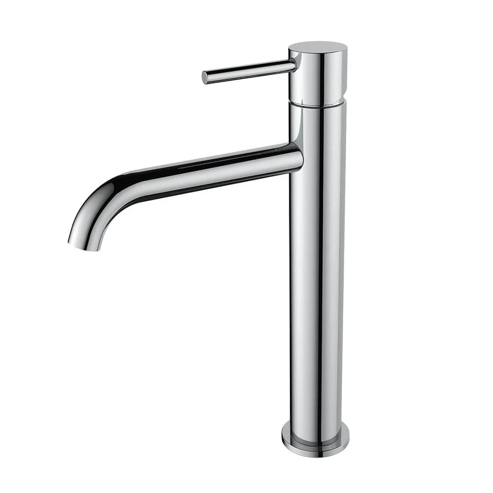 Deze extra hoge wastafelkraan is niet alleen door zijn hoogte indrukwekkend. Ook het efficiënte bedieningsmechanisme met één hendel bovenop de kraan mag er zijn: het levert een strakke no nonsense vorm op. Door de diepe, subtiel gekromde uitloop en de hoogte is deze kraan meer dan perfect om je handen onder te wassen.